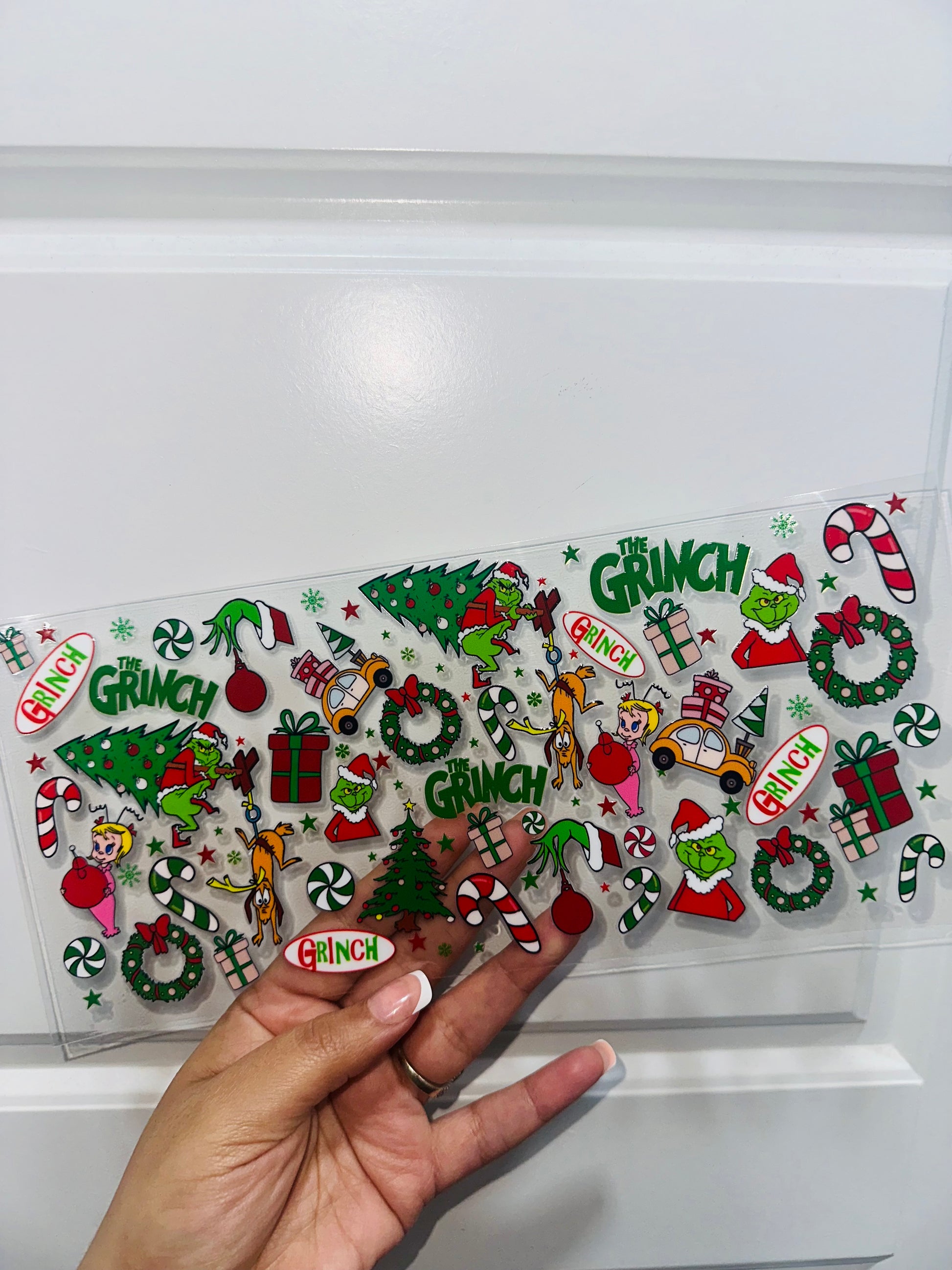 The Grinch 16oz uvdtf wrap. Can apply on cups or anything hard surfaced.